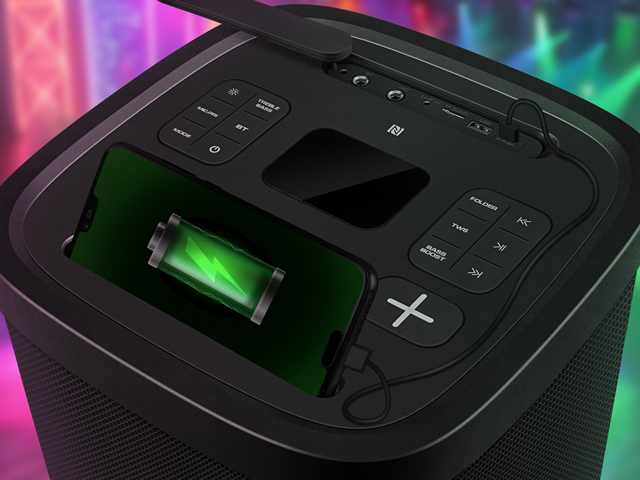 Power bank function allows to charge other devices, including those that are used as a sound source.