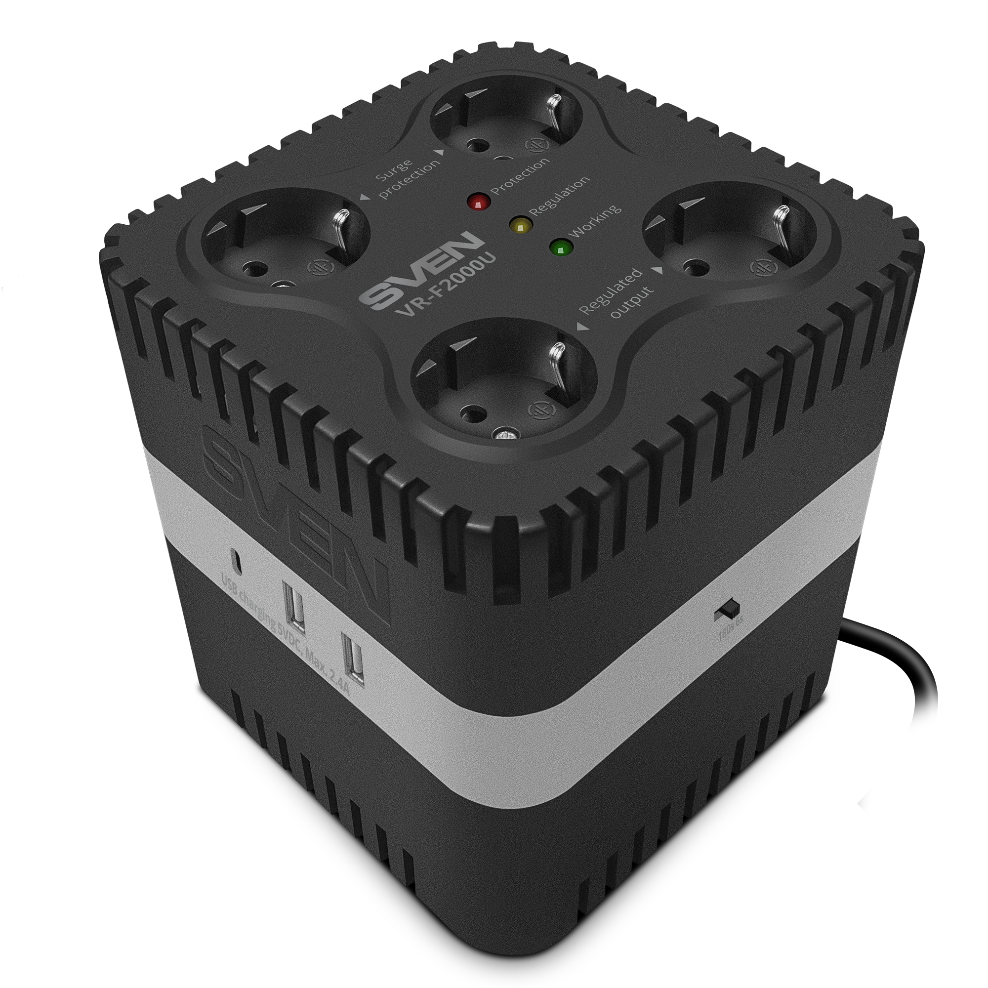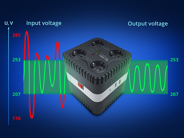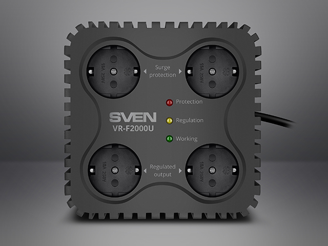 We are pleased to present a single-phase relay voltage stabilizer designed for comprehensive protection of home appliances and simultaneous charging of mobile devices. The SVEN VR-F2000U model combine voltage stabilization, surge suppression, and modern USB hub functionality in one compact solution.