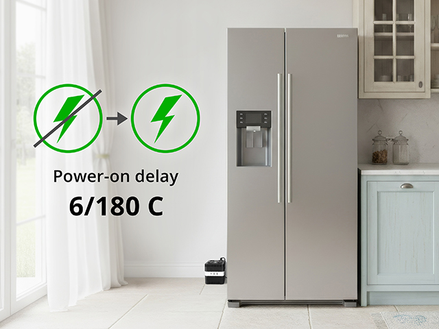 Power supply to connected devices after a power failure is possible with a pause of your choice for 6 or 180 seconds, which provides an additional level of protection.