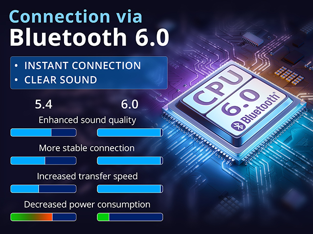 Bluetooth 6.0 wireless technology establishs fast and high-quality device connection, as well as maximum comfort. No more inconvenience, just enjoy of listening to your favorite music.