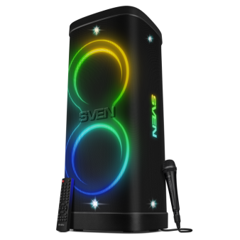 Introducing the new flagship portable speaker, the SVEN PS-1050 — the true maestro for anyone who values atmosphere as much as music. This isn't just a speaker; it's a complete mobile studio for home parties, backyard gatherings, and even outdoor performances.