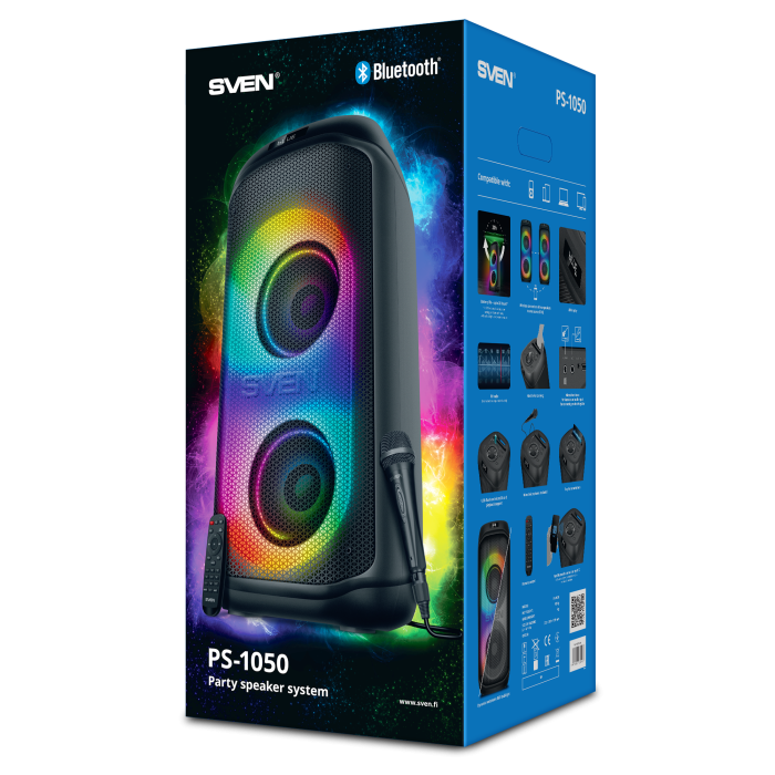 SVEN PS-1050 party speaker system isn't just sound. It's emotion you can take anywhere — a device where technology serves the atmosphere, not the other way around.