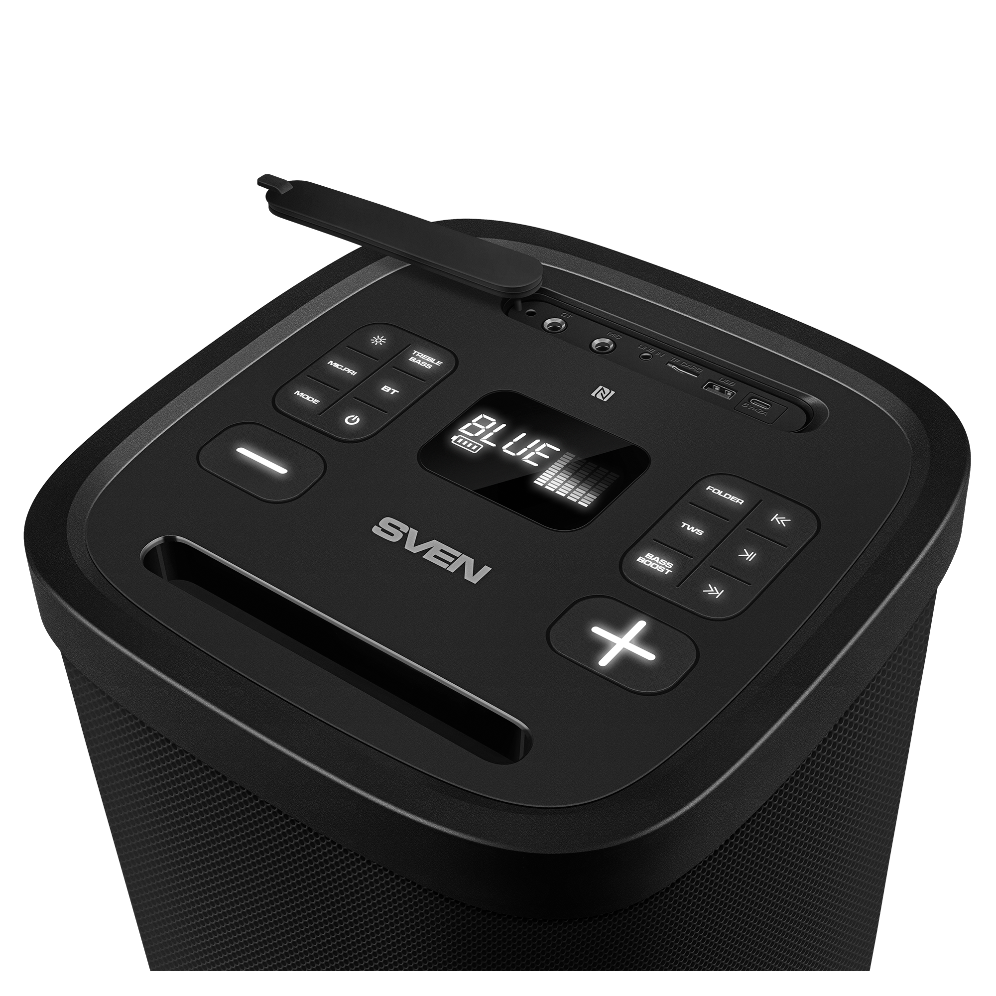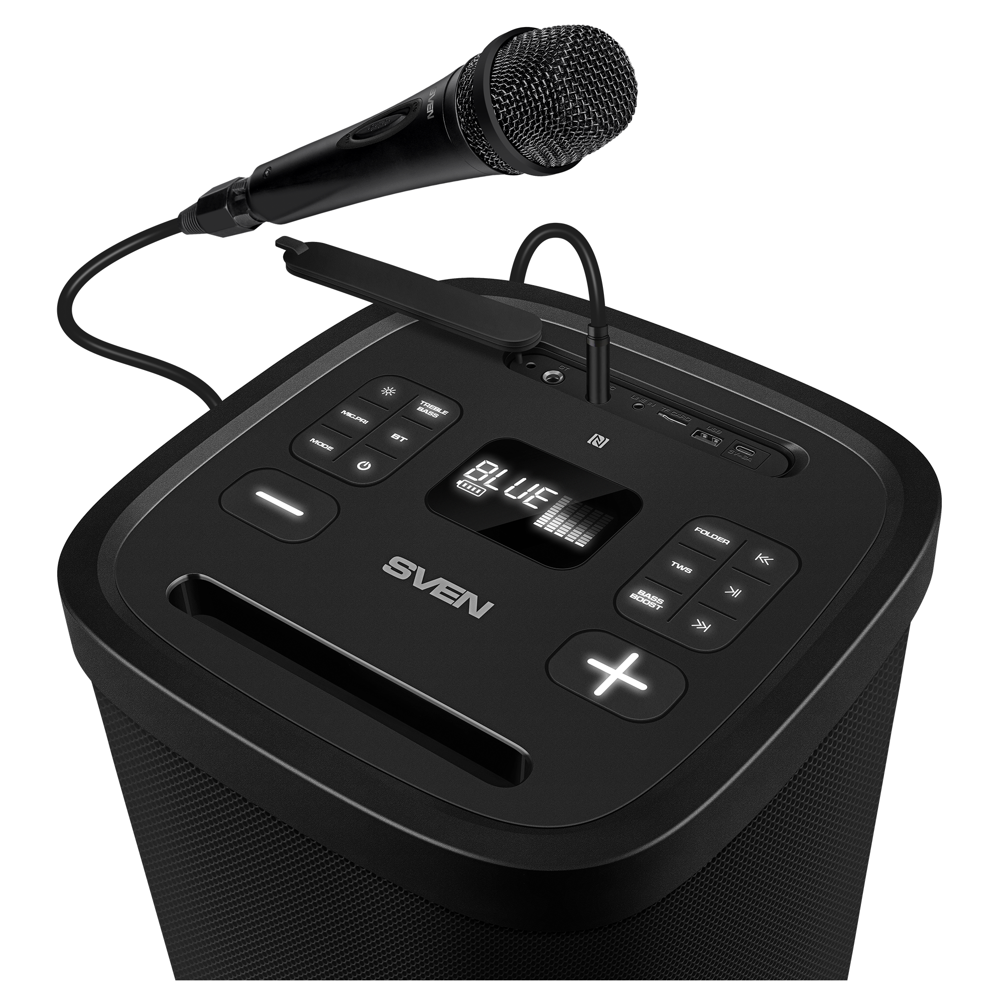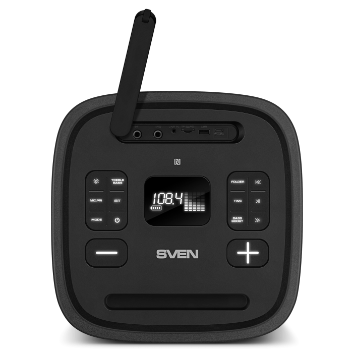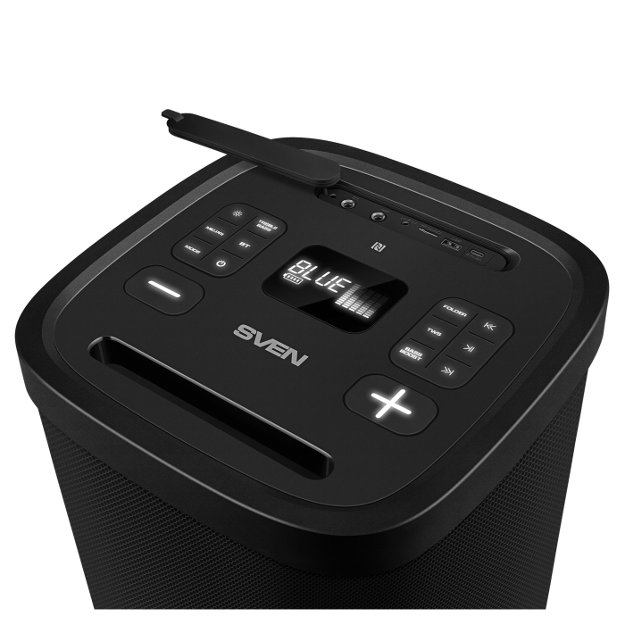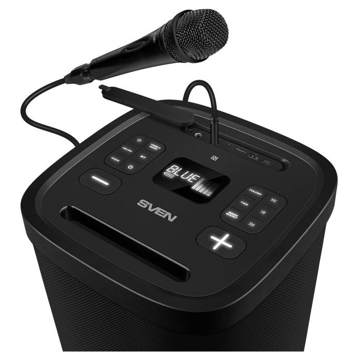 Introducing the new flagship portable speaker, the SVEN PS-1050 — the true maestro for anyone who values atmosphere as much as music. This isn't just a speaker; it's a complete mobile studio for home parties, backyard gatherings, and even outdoor performances.