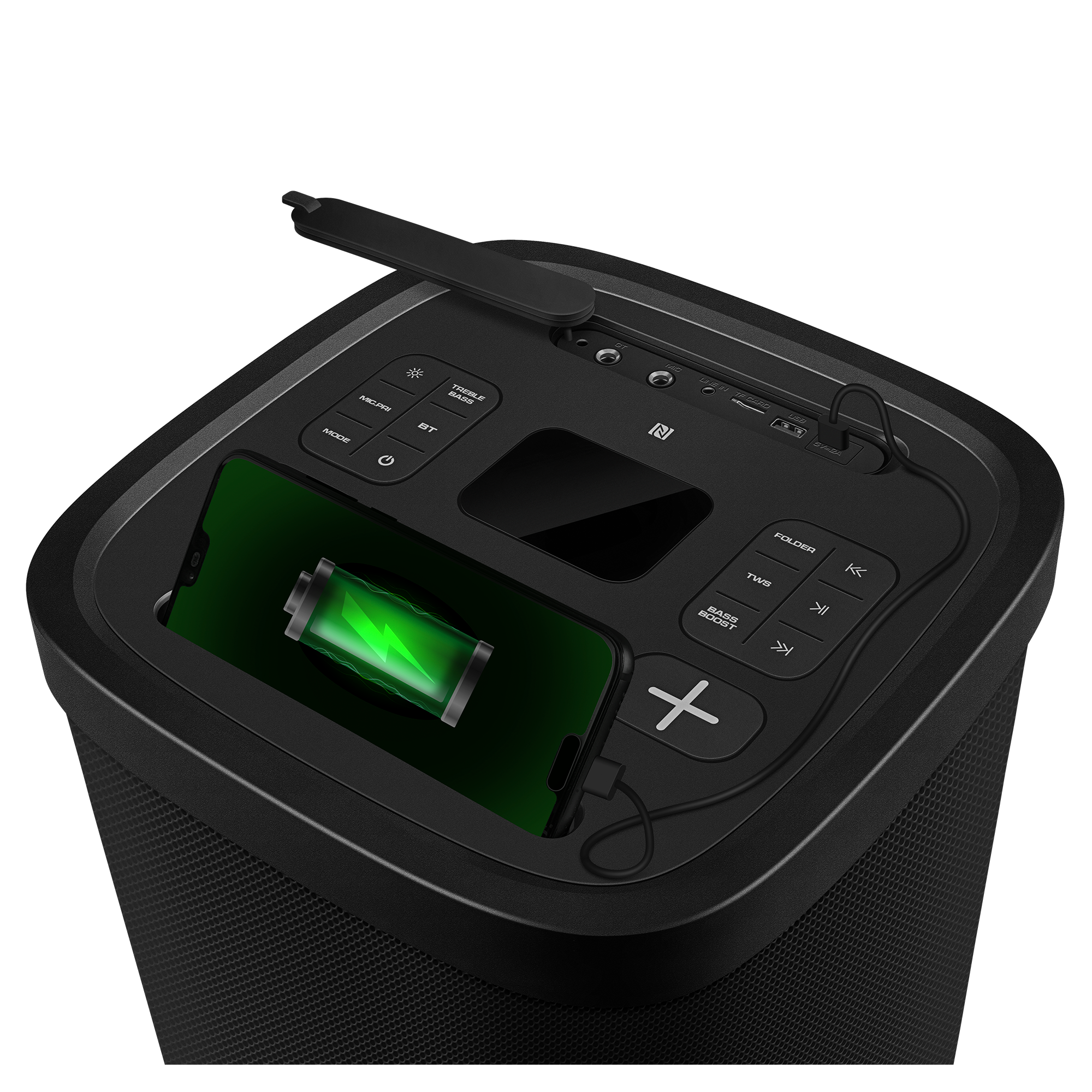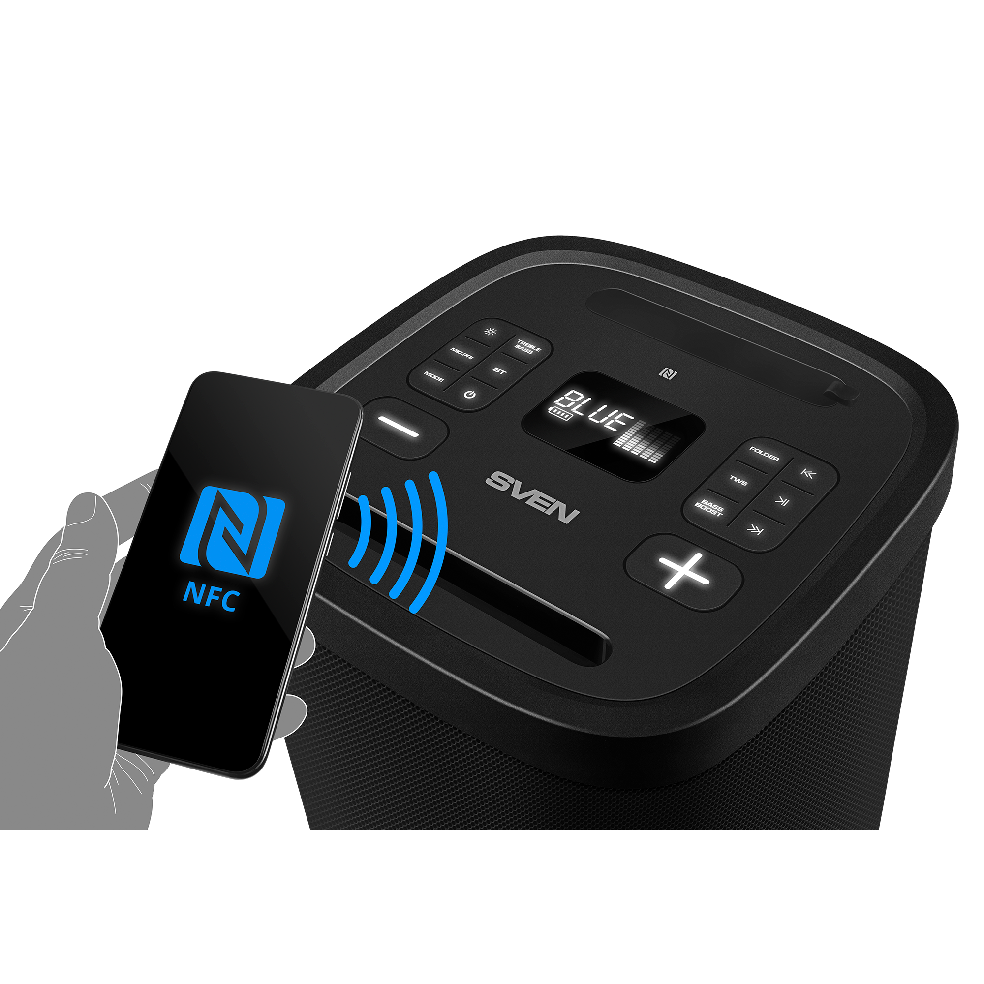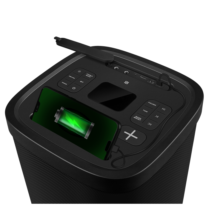 Introducing the new flagship portable speaker, the SVEN PS-1050 — the true maestro for anyone who values atmosphere as much as music. This isn't just a speaker; it's a complete mobile studio for home parties, backyard gatherings, and even outdoor performances.
