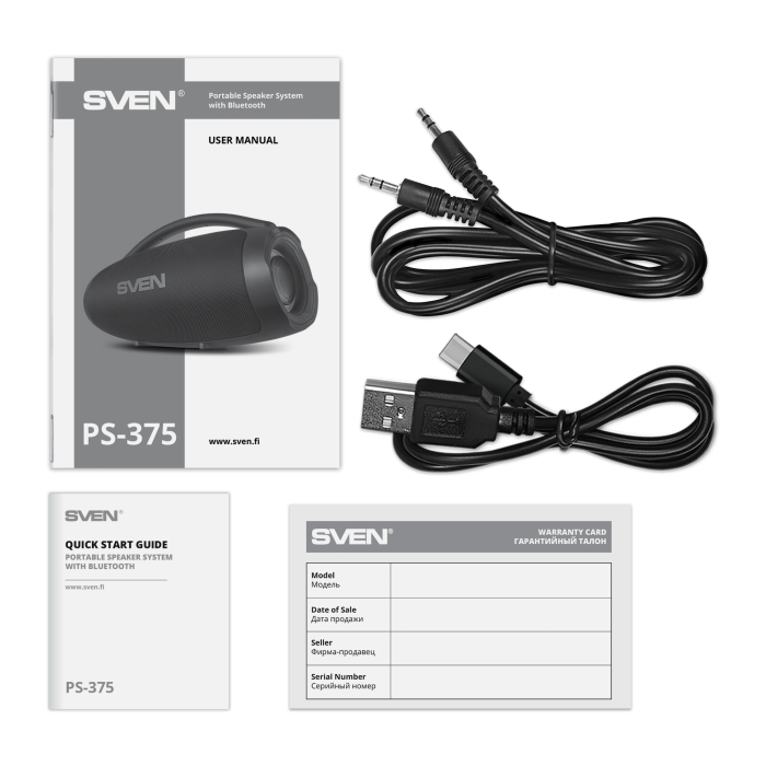 An ergonomic handle makes the PS-375 truly portable — perfect for picnics, cabin getaways, or parties with friends. Its dimensions (450 × 245 × 190 mm) and weight of just 3.3 kg strike a smart balance between audio power and portability. The SVEN PS-375 isn’t just a speaker — it’s a true musical companion for those who refuse to compromise on sound, style, or freedom.