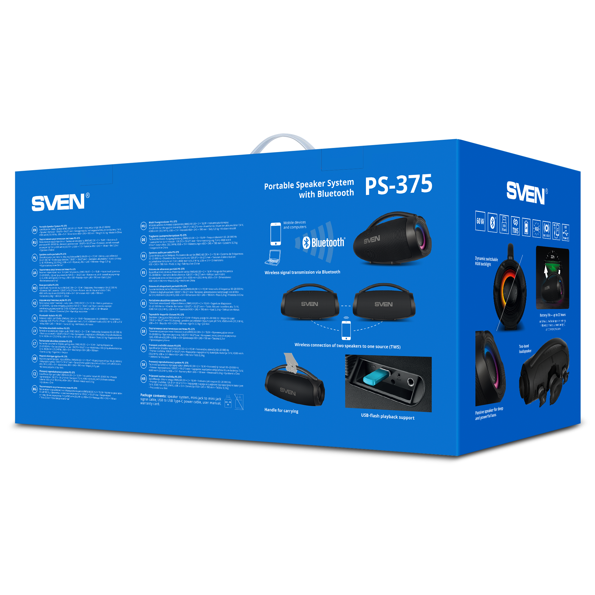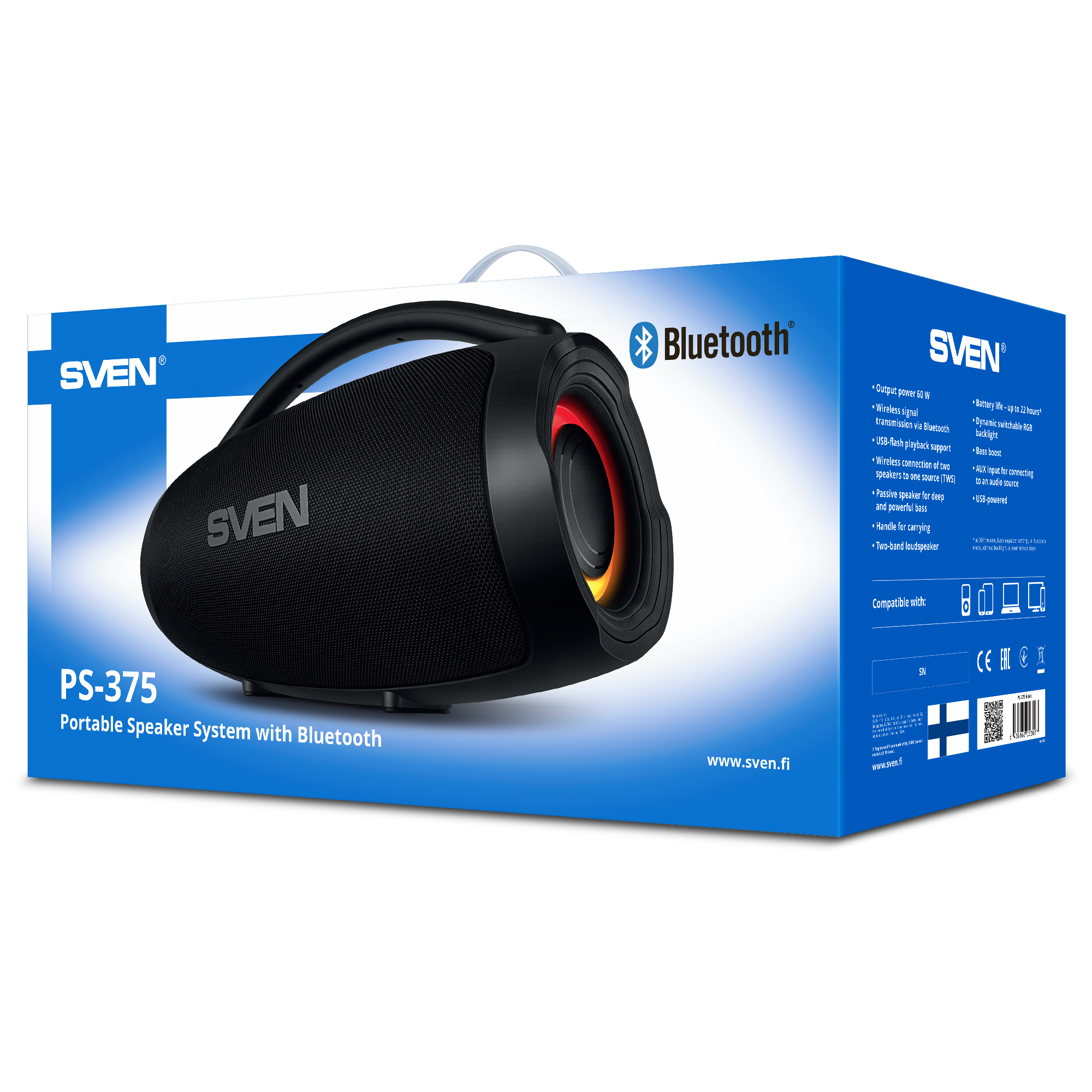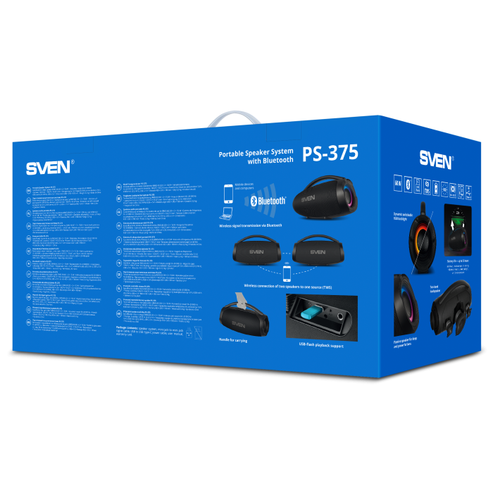 SVEN PS-375 PORTABLE SPEAKER — DEEP BASS AND DYNAMIC RGB LIGHTING
