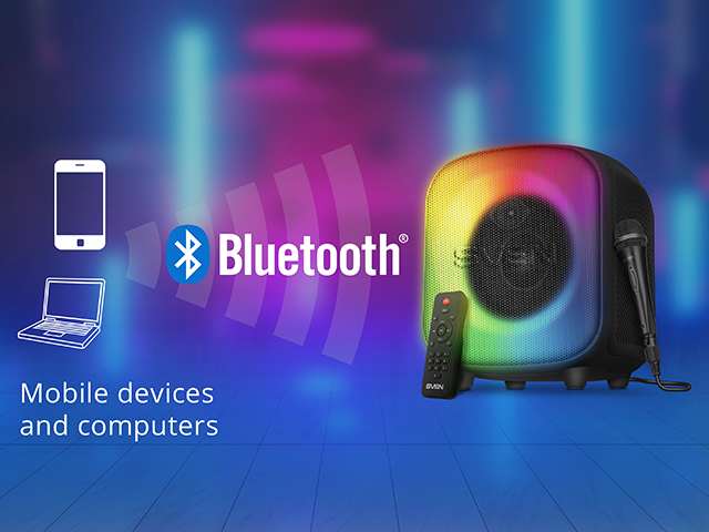 At the same time, it is absolutely not necessary to connect an external sound source. You can record your favorite tracks and soundtracks on a flash drive or microSD card, and then play them using the player built into the speaker system. The remote control will help you control playback, volume and other important parameters of the acoustics. So that you won’t have to leave your friends having fun on the dance floor to go to the speaker and make it louder.