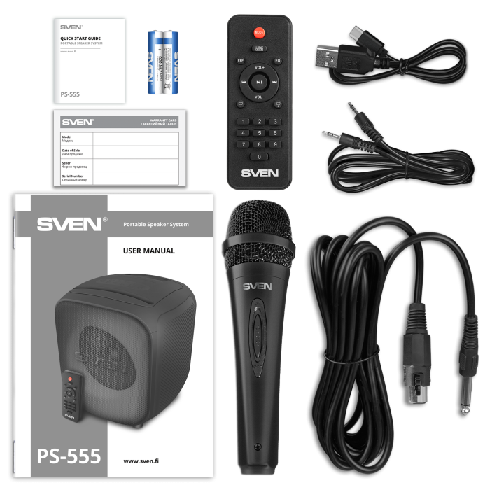 Details >>We present a portable acoustics for those who cannot imagine their life without music, parties and karaoke singing. SVEN PS-555 developers have managed to put everything you need into a compact portable audio system to turn any meeting of friends into a vivid event that all its participants will remember for a long time. First of all, the developers of the audio system took care of loud and high-quality sound assuredly.