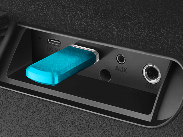 The speaker supports wireless Bluetooth connectivity and features TWS (True Wireless Stereo) technology, allowing you to pair two identical units for true stereo sound — doubling not just volume, but also emotional depth and spatial immersion. A built-in 4500 mAh lithium-ion battery delivers up to 22 hours of playback at moderate volume (with lighting off and under standard conditions). Additional connectivity options include a USB port for direct playback from flash drives and a 3.5 mm AUX input for wired connections.