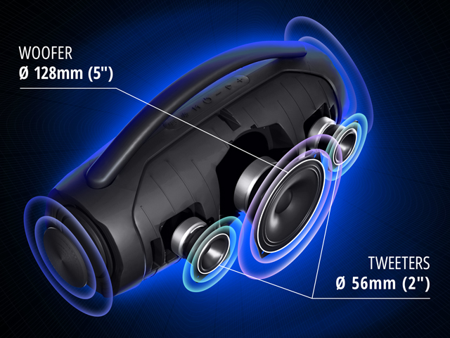 Passive radiator helps playback low frequencies, providing clear and powerful bass.