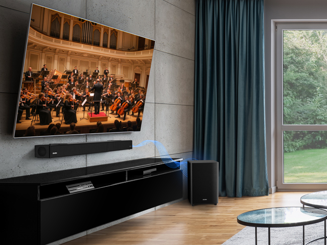 Creates a three-dimensional soundstage, directing sound not only horizontally, but also from above. This immerses you in the action, making the sound more spacious, realistic, and exciting, just like in a movie theater. On-screen objects come to life with precise sound positioning.