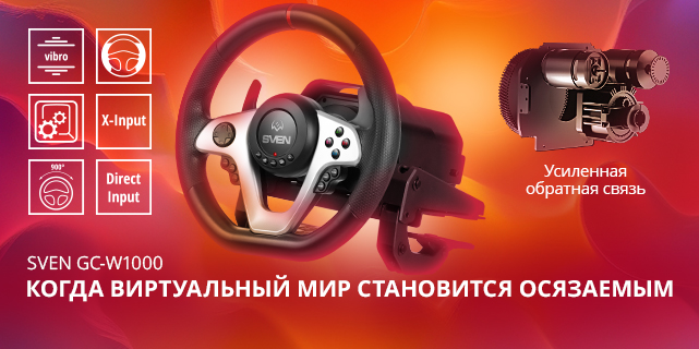 Автосимуляторы — это отличная возможность почувствовать себя за рулем любого автомобиля: гоночного болида, суперкара мечты или большого грузовика. Но впечатления будут неполными, если управление осуществляется с помощью клавиатуры или даже геймпада — настоящему гонщику нужен полноценный игровой руль. Благодаря реалистичной виброотдаче рулей от SVEN игрок может почувствовать все нюансы управления автомобилем: от поведения в заносе до смены дорожного покрытия.