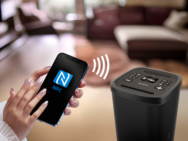 Благодаря технологии NFC*, ваше устройство синхронизируется с колонкой в одно касание и автоматическое соединение происходит моментально, после чего вы сможете незамедлительно приступить к прослушиванию любимого контента.