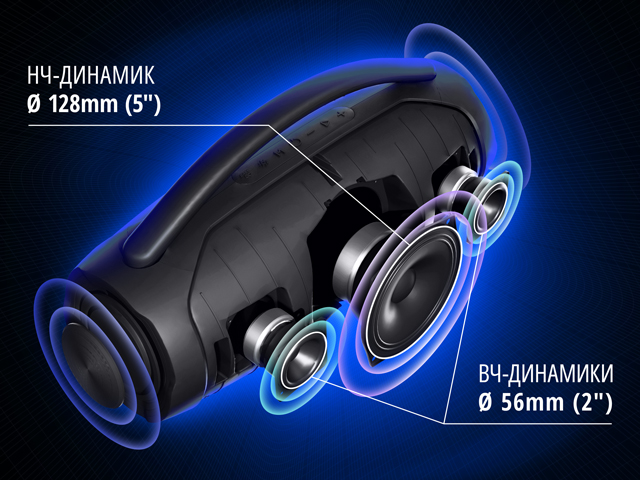 | Размеры динамиков, мм | Ø 128 (5") + 56 (2") |