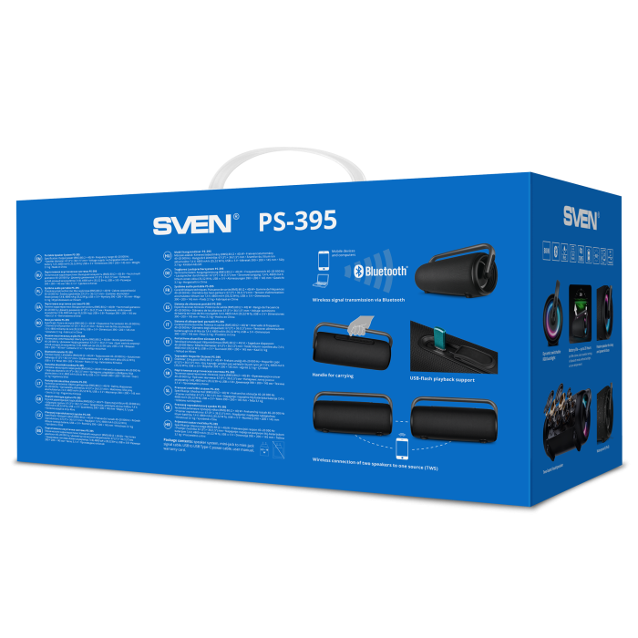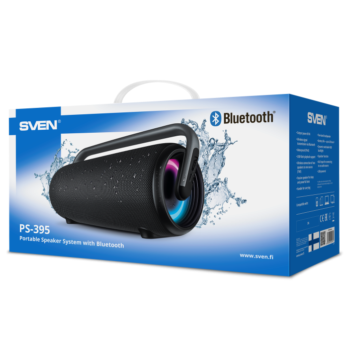 Мы продолжаем радовать поклонников портативной акустики, предлагая всё более оригинальные модели — как по оформлению, так и по конструкции. Наши инженеры регулярно не только обновляют дизайн колонок, но и переосмысливают привычные форматы. SVEN PS-395 выполнена в ставшем уже классическим форм-факторе «бочонка» с пассивными излучателями на торцах. Однако на этот раз колонка заметно крупнее своих предшественниц, а также оснащена удобной и эффектно выглядящей ручкой для переноски.