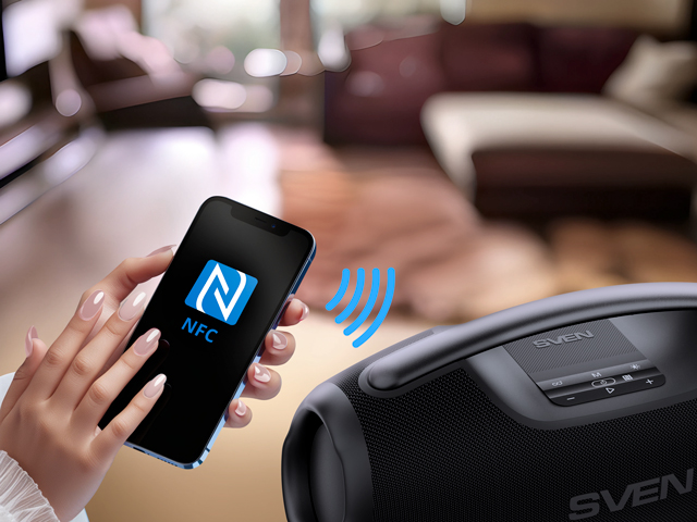 Благодаря технологии NFC*, ваше устройство синхронизируется с колонкой в одно касание и автоматическое соединение происходит моментально, после чего вы сможете незамедлительно приступить к прослушиванию любимого контента.