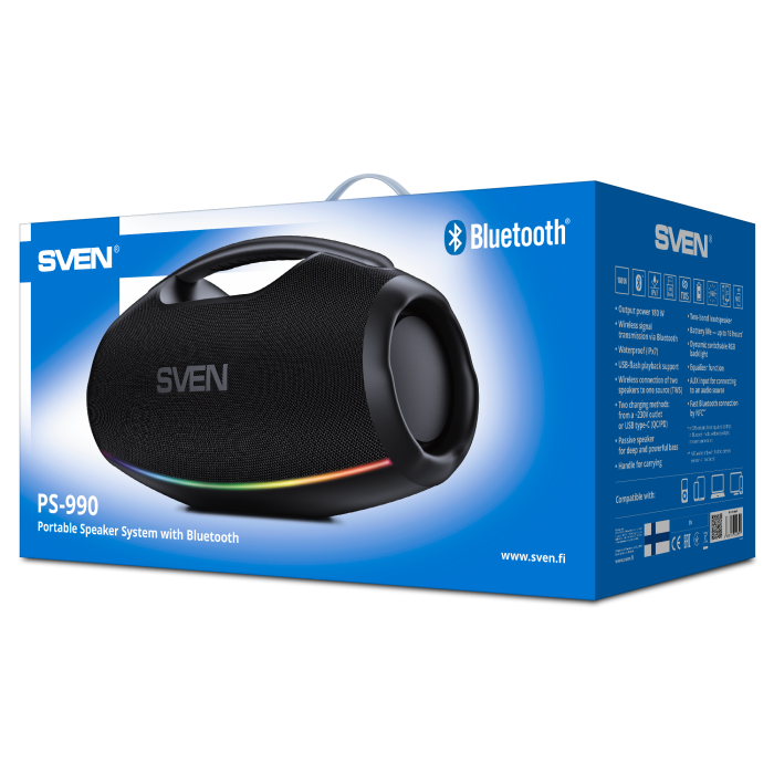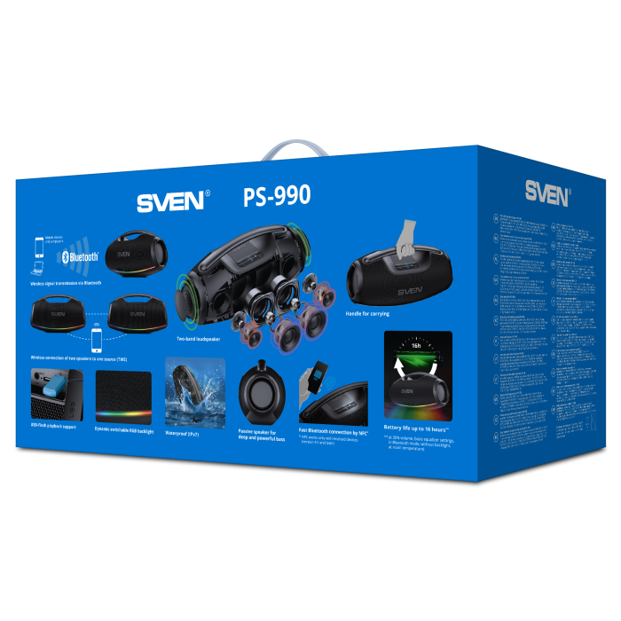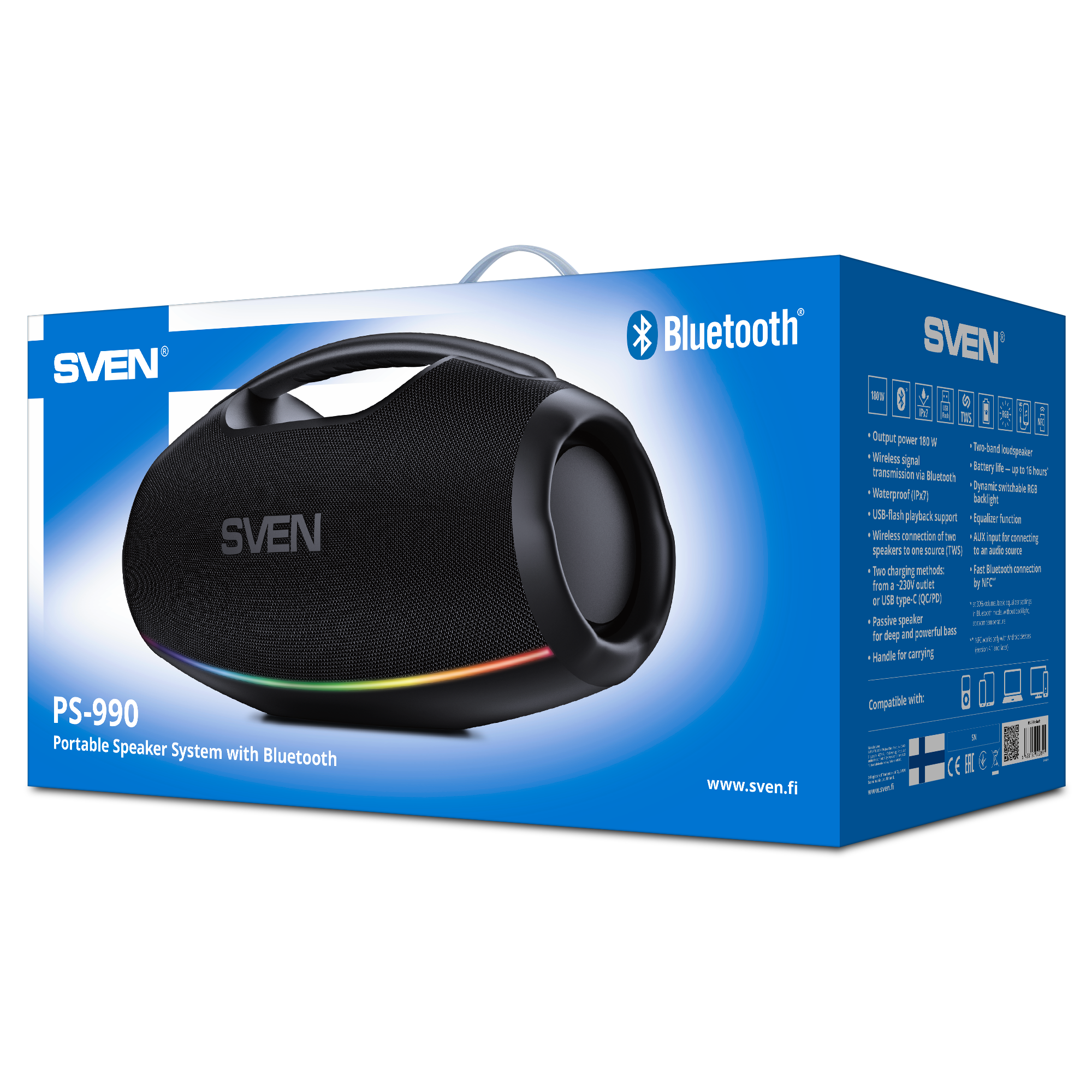 Представляем новую портативную акустическую систему SVEN PS-990, которая объединяет, казалось бы, несовместимые характеристики: высокую мощность, компактность, стильный дизайн и водозащиту.
