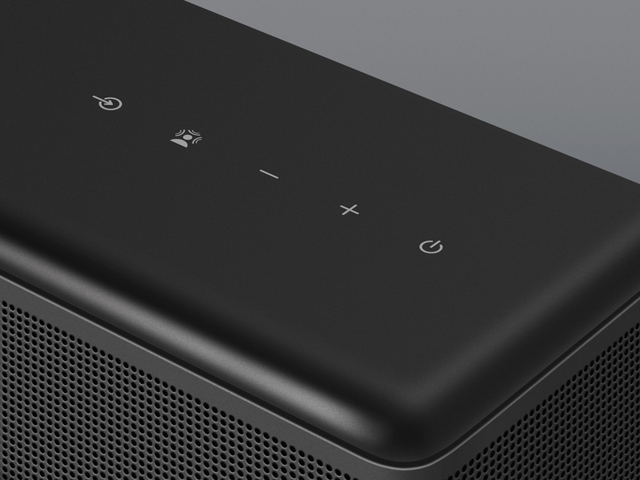 Клавиши управления саундбаром вынесены на верхнюю панель и максимально удобны в использовании.