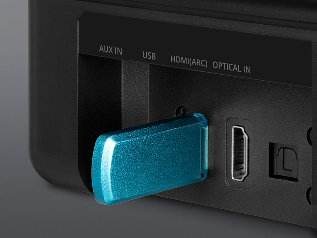 Для подключения к телевизору можно использовать HDMI с поддержкой обратного аудиоканала (ARC), а также оптический или аналоговый (AUX) вход. Звук с мобильных устройств легко передается по Bluetooth — фоновая музыка или любимый подкаст запускаются за пару секунд. Кроме того, в саундбар встроен медиаплеер, который воспроизводит музыку прямо с USB-носителя.